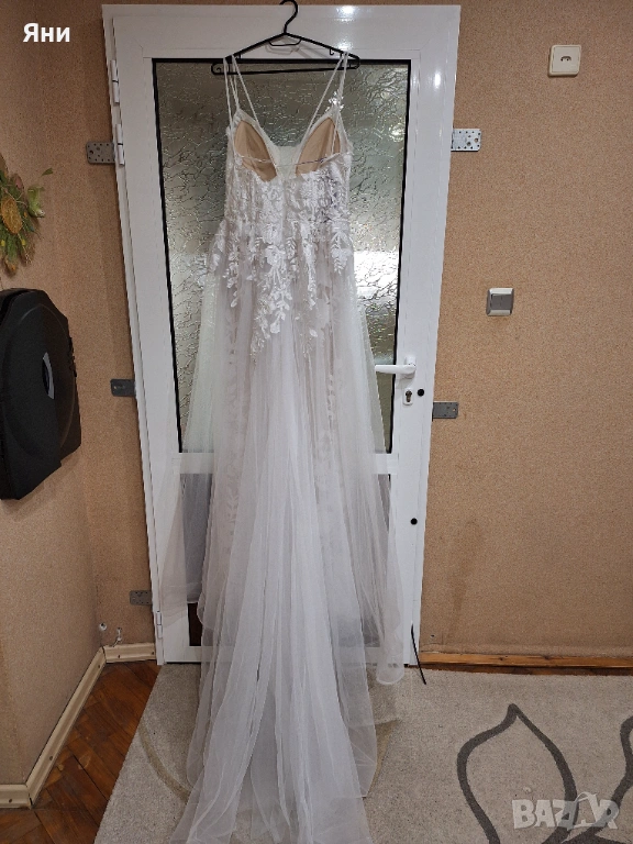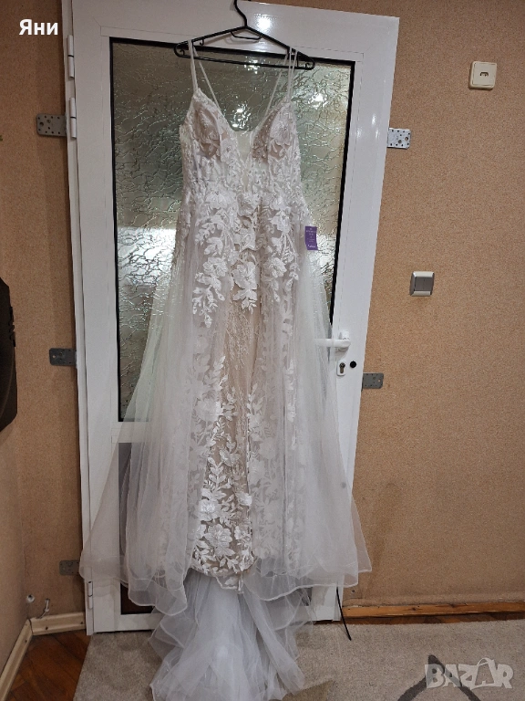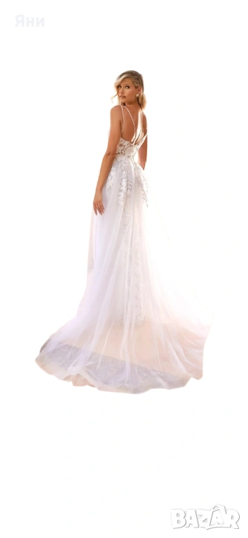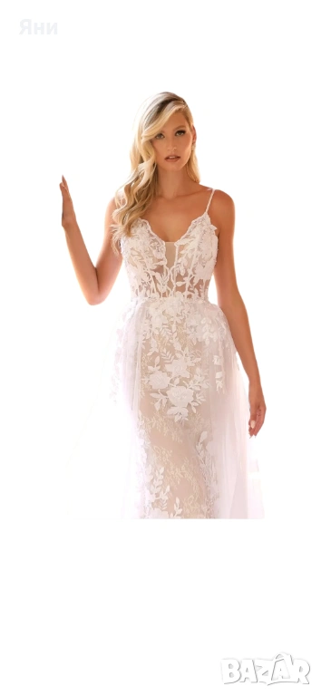 Ladivine (известна в миналото като Cinderella Divine) е водеща модна марка, базирана в Лос Анджелис, ССватбена рокля Ladivine CD931WТази рокля е истинско произведение на изкуството, създадено за булките, които търсят романтика и гъвкавост в своята визия.Основни характеристики:Дизайн 2-в-1: Роклята е тип „русалка“ (sheath/mermaid) по тялото, допълнена от подвижна обемна пола (overskirt) от пластове мек тюл, която придава драматизъм за церемонията и може да се свали за партито.Изящна дантела: Моделът е богато украсен с ръчно рязани флорални апликации и Chantilly дантела, нежно декорирани с имитация на перли и дискретни пайети за лек блясък.Корсетен боди: Полупрозрачен корсет с дълбоко V-образно деколте и елегантни двойни тънки презрамки, които преливат в изрязан гръб.Детайли: Завършва с изискан шлейф (chapel train) и „конски косъм“ подгъв за перфектна структура и обем на полата.Цвят: Слонова кост (Off White) – класически нюанс, който отива на всеки тен. Защо да изберете този модел?Моделът CD931W е перфектният баланс между сексапилното излъчване на вталената рокля и приказния обем на традиционната булчинска визия. Изключително подходяща за булки, които искат две коренно различни визии в един ден, без да купуват две отделни рокли.АЩ.