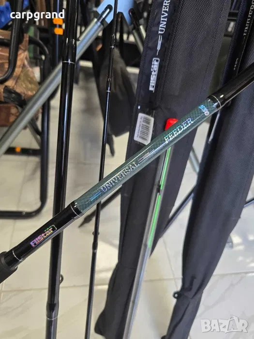 Universal Feeder е практична и надеждна фидер въдица със стъклопластова бланка, отличаваща се със здравина и устойчивост при работа с по-тежки кошници. Моделът е оборудван с комбинирана корк/EVA дръжка за удобен захват и водачи, осигуряващи плавно движение на влакното.