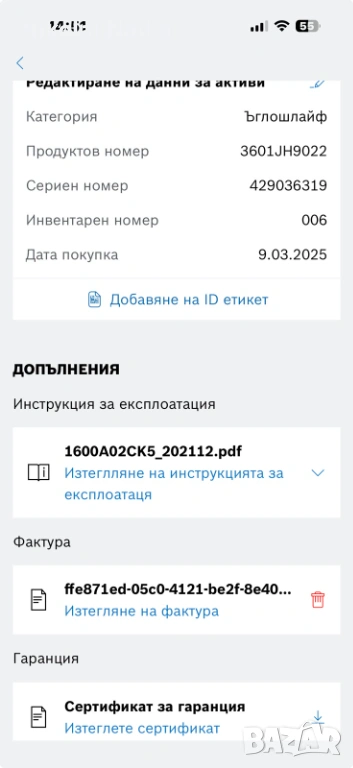 Ъглошлайфа е пробван само, на практика е чисто нов. Кутията не е налична, изпращам с преглед и тест. Мога да добавя батерия 4 Ah . Мога да пратя снимка на фактура и сертификат за удължена гаранция.