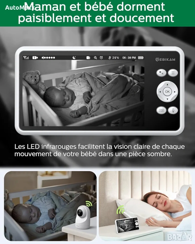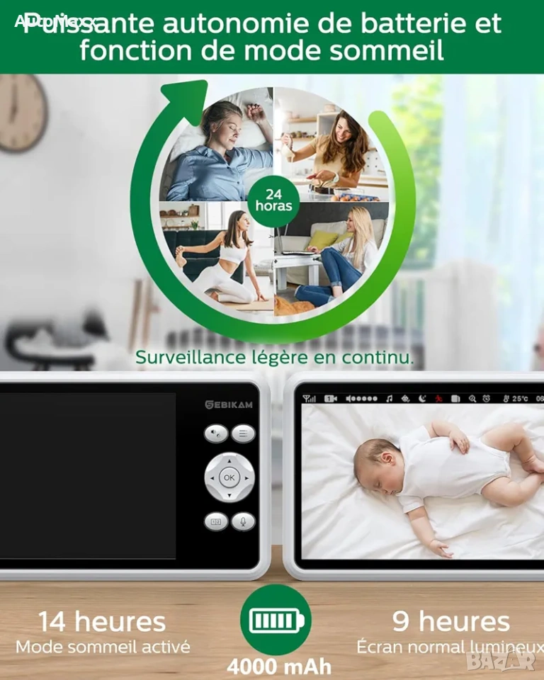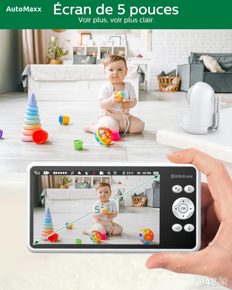 Бебешки монитор 5 инча 720P HD IPS екран видео монитор Sebikam → Обява 54164032
