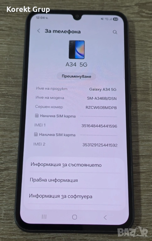 - Сензорен дисплей: Super AMOLED, 120Hz, Corning Gorilla Glass 5