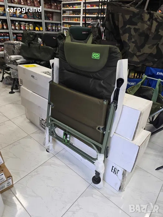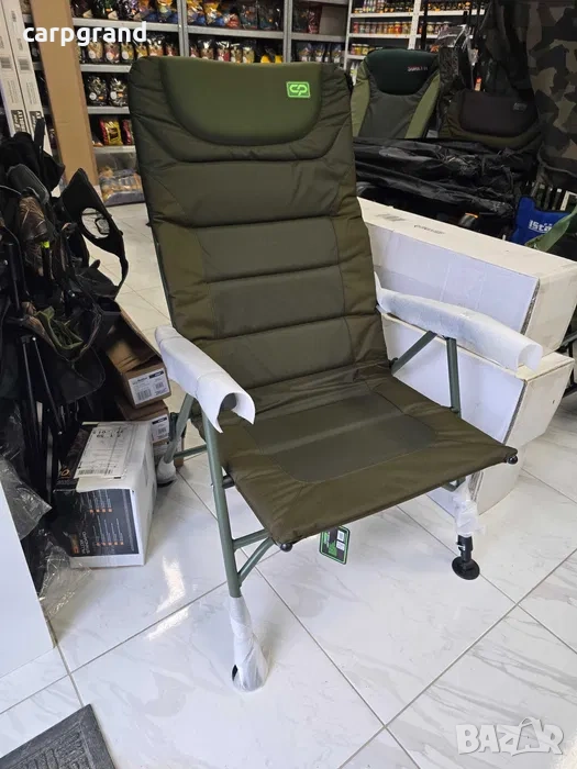 Шаранджийски стол със стабилна конструкция, изработен от водонепропусклив материал и добре подплатен за по-голям комфорт.