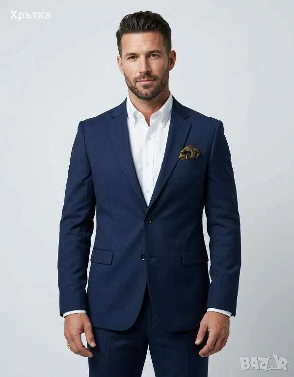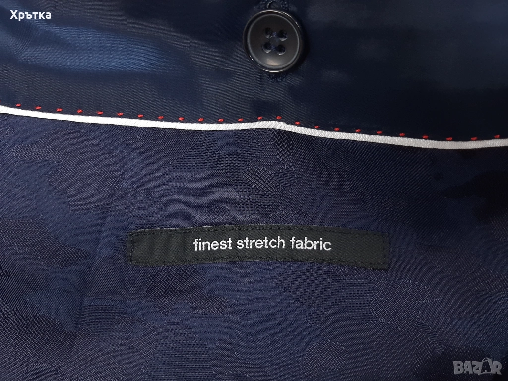Материята е висококачествен микс с вълна и еластан, тази специфична комбинация прави сакото изключително меко, дишащо и еластично, като същевременно е силно устойчиво на мачкане – идеално за дълги бизнес дни и пътувания.