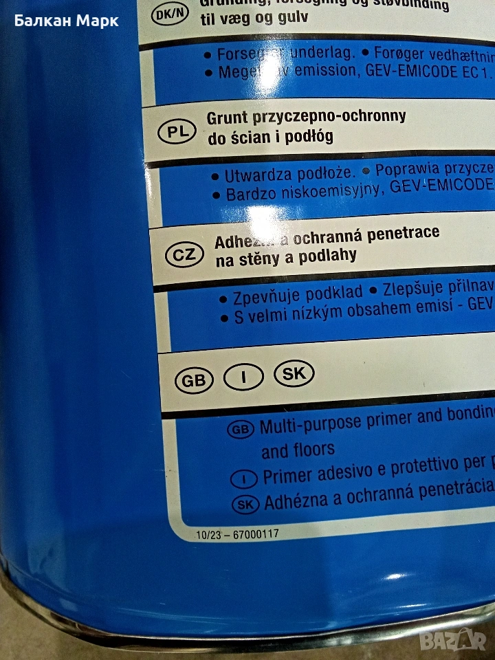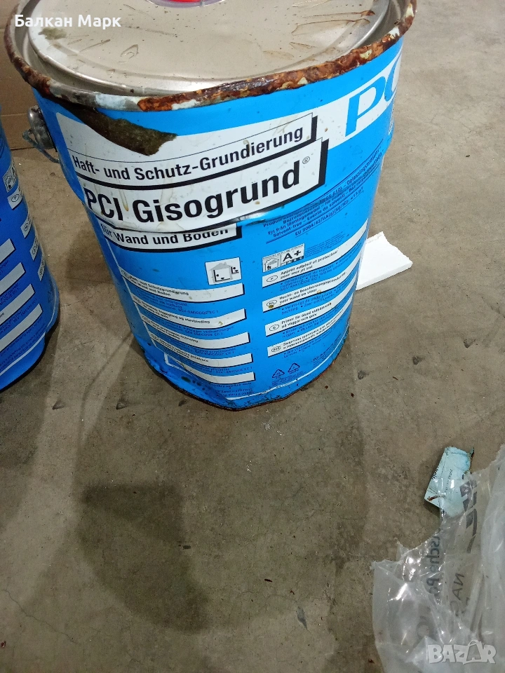 Продавам оригинален син защитен грунд PCI Gisogrund, част от разнообразна палетирана стока, внесена от Германия. Продуктът е от най-висок клас, предназначен за подготовка на повърхности преди полагане на плочки, замазки и мазилки.