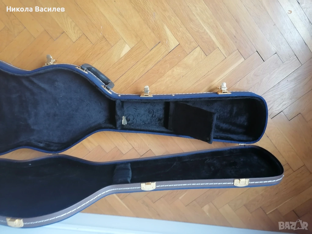 Отличен куфар за бас китара. Вътршен размер 116.голяма фендерска глава не влиза. Куфара е с ключове.