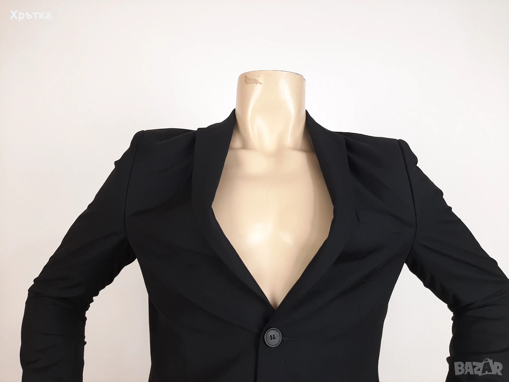 Моделът е с класическа елегантна кройка, която подчертава раменете и следва естествената линия на тялото.