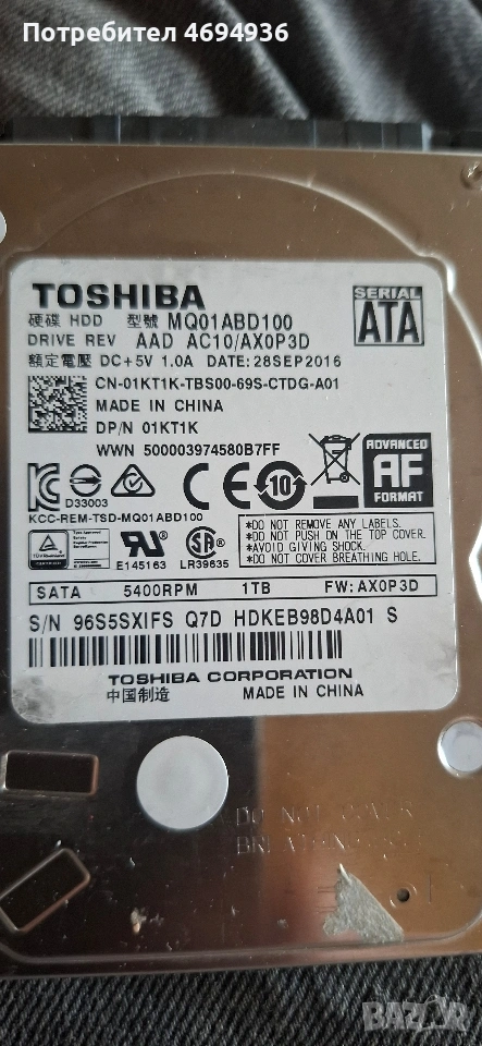 външен диск 1ТБ.на 333дни ползван на 100процента → Обява 54164369