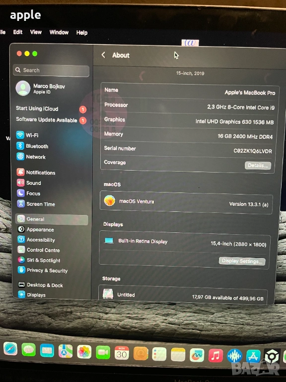 15" 8-core MacBook Pro А1990 Touch/Mid-2019/-i9/16GB RAM/512GB SSD → Обява 54164402