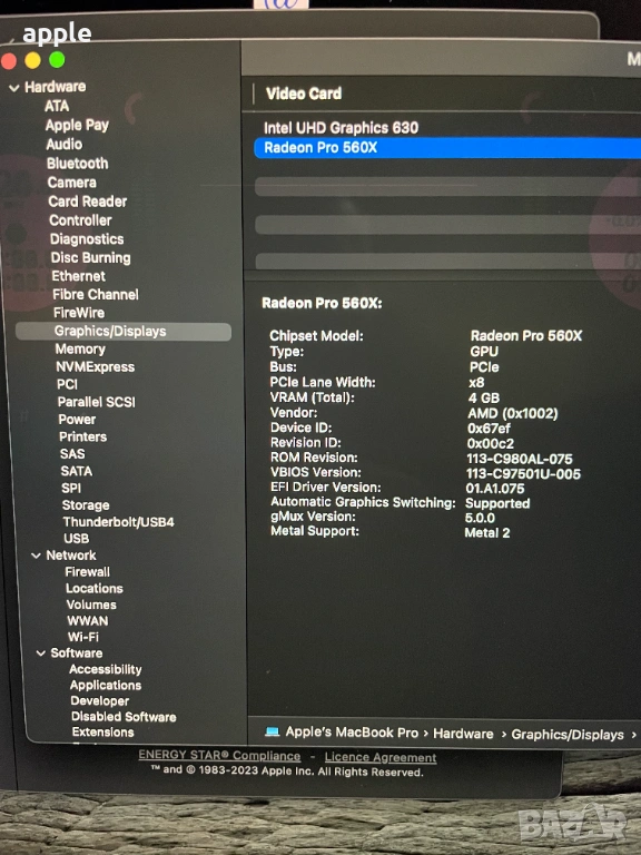 Radeon Pro 560X with 4GB of GDDR5 memory and automatic graphics switching