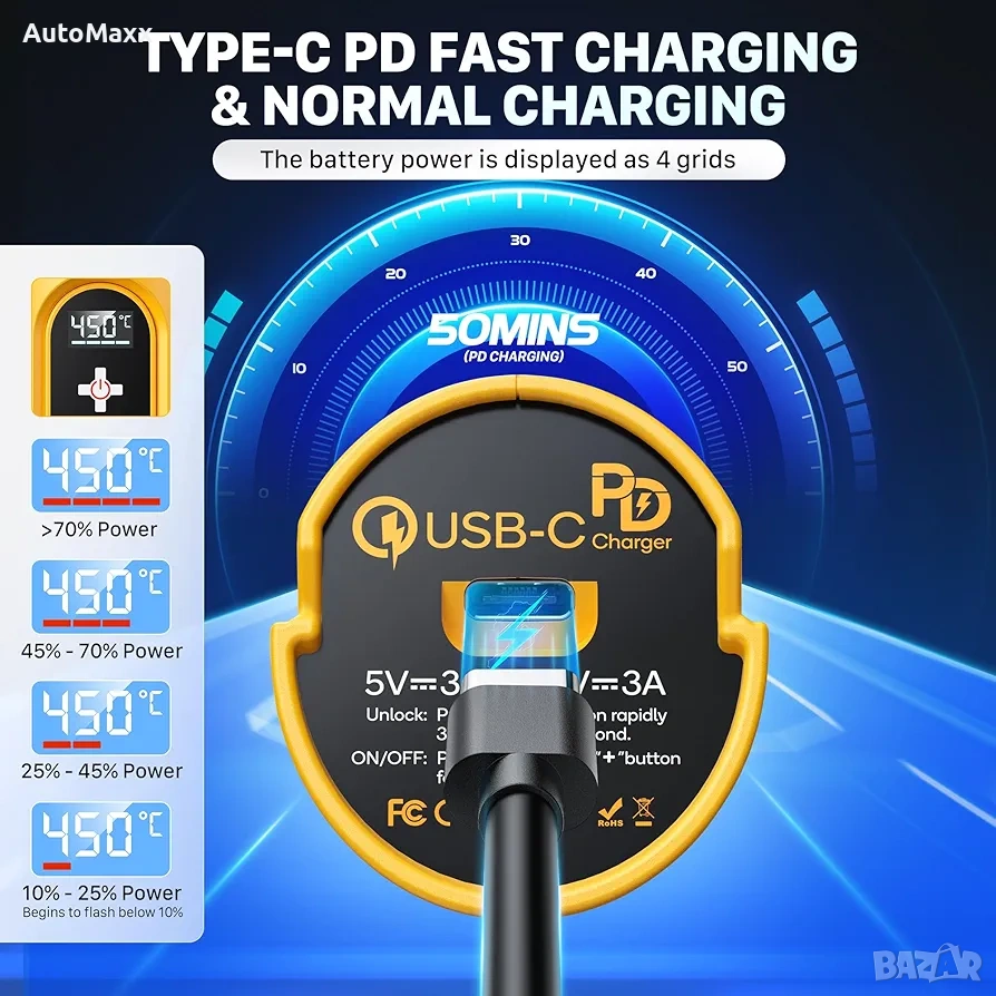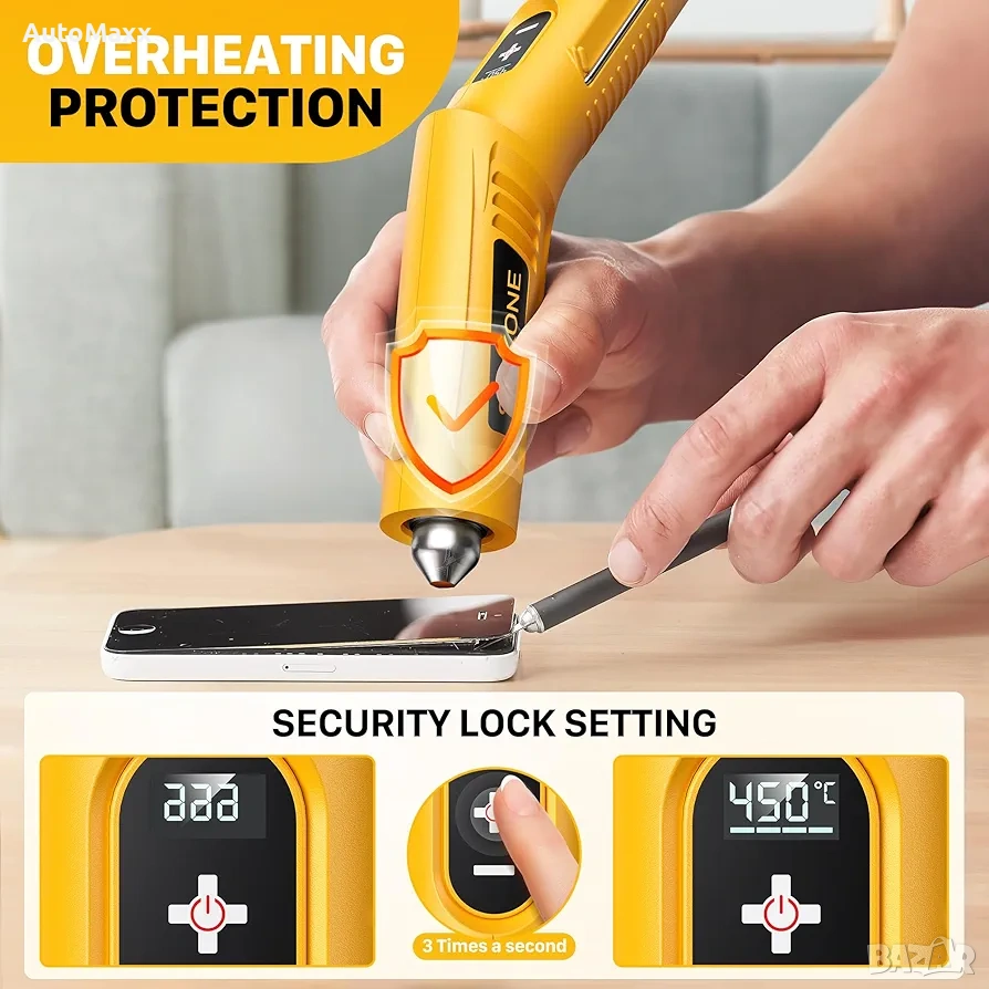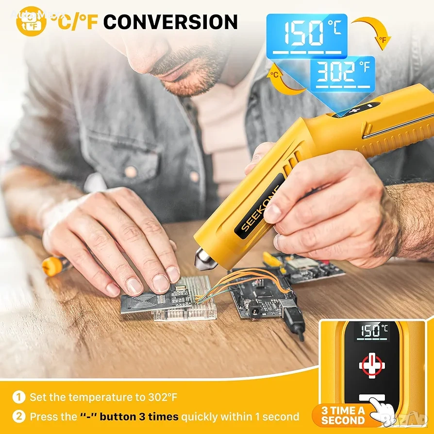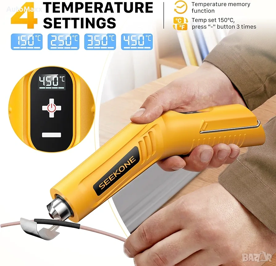 SEEKONE Безжичен мини пистолет за горещ въздух с 4 температурни настройки (до 450°C) и функция памет, 3.6V литиев пистолет за горещ въздух, USB зареждане с рефлекторна дюза за занаяти