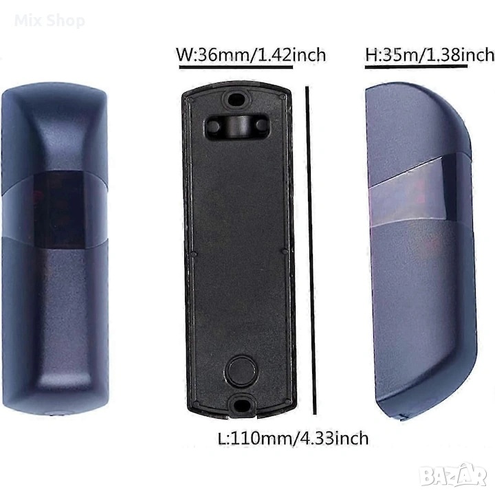 1 сензор за безопасност с лъч, захранване AC 12/24V, изход без превключвател NC. Намалена консумация с 30% при лошо време. Тип за стенен монтаж, електронна платка, въртяща се на 135°, която позволява несъосно инсталиране. Не е водоустойчив, степен на защита IP55, работи с всички отварящи устройства за порти/врати. Ролетни щори за гараж/плъзгащи врати. Функция: Инфрачервената фотоклетка автоматично спира или обръща мотора/оператора, когато бъде засечен обект при затваряне на вратата.