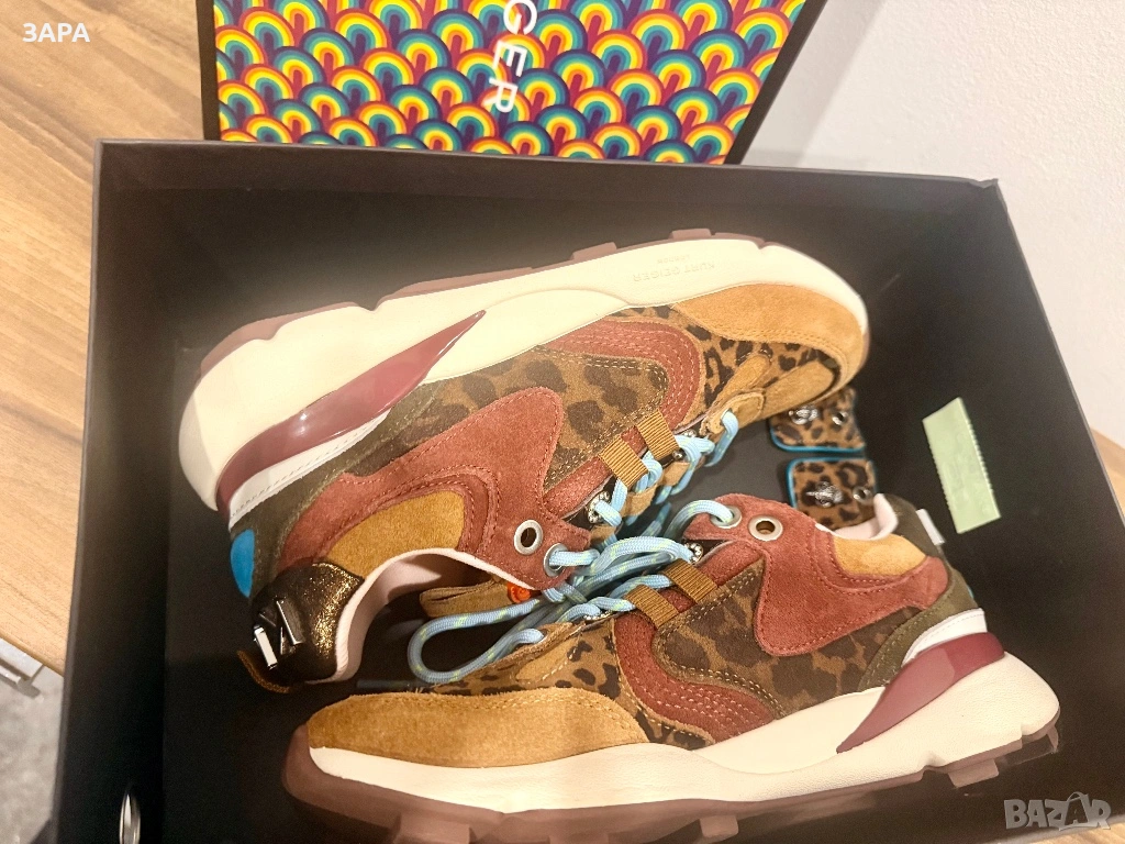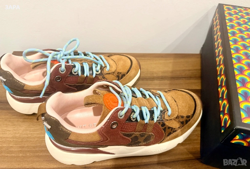 Кожени маратонки Kurt Geiger London Kurt Runner в многоцветен дизайн. Обувани са за 1 час. Уникално красиви. Естествен велур и кожа отвън и вътре. Размер 38. Големи са ми. Неразличими от нови!!!