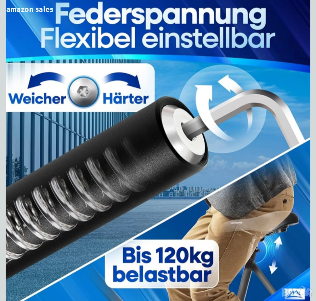 - Абсолютно облекчение: Благодарение на специално разработената ни пружинна седалка с удобно окачване за 65–120 кг, вие осигурявате перфектно облекчение за гръбначния си стълб и гарантирате безболезнено каране.