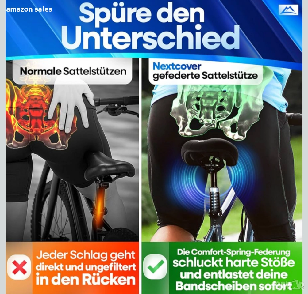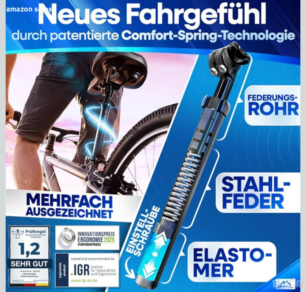 - Максимален комфорт: Нашата патентована система и превъзходната технология Comfort-Spring на нашето колче за седалка, разработена в Германия, винаги ви предлагат оптимално абсорбиране на ударите на всякакъв терен.