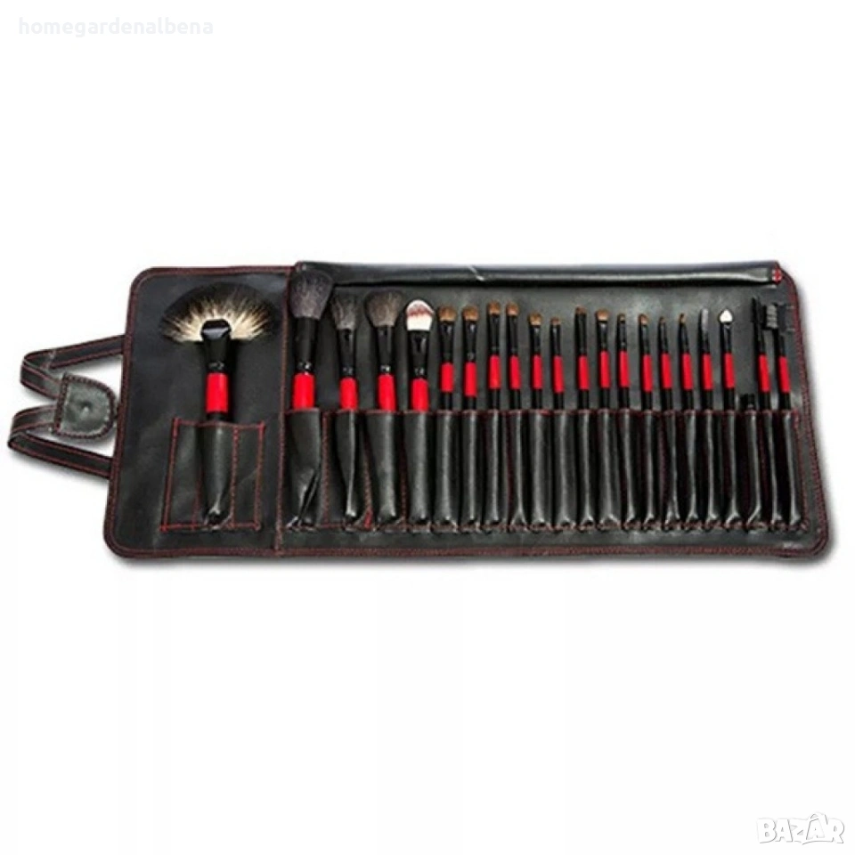 Комплект 22 четки за грим HZS83 в разгъваща се чантичка естествена кожа