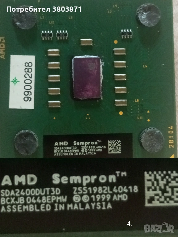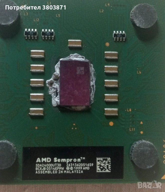 3. Работещ процесор AMD Sempron 2400+ за сокет A (Socket 462). 2 брия. Процесорът е базиран на ядрото "Thoroughbred-B".