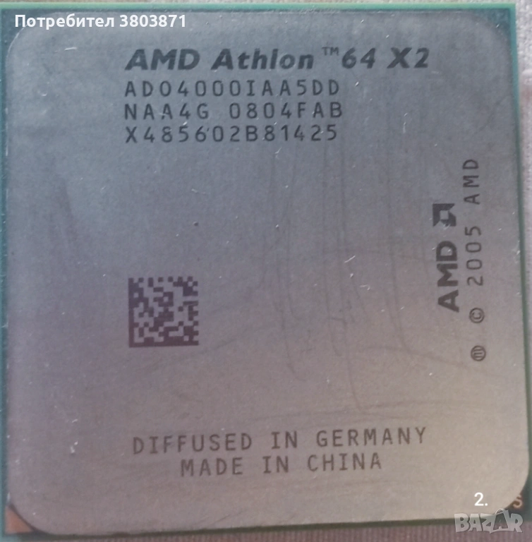 2. Работещ двуядрен процесор AMD Athlon 64 X2, AD04000IAA5DD съответства на модела 4000+