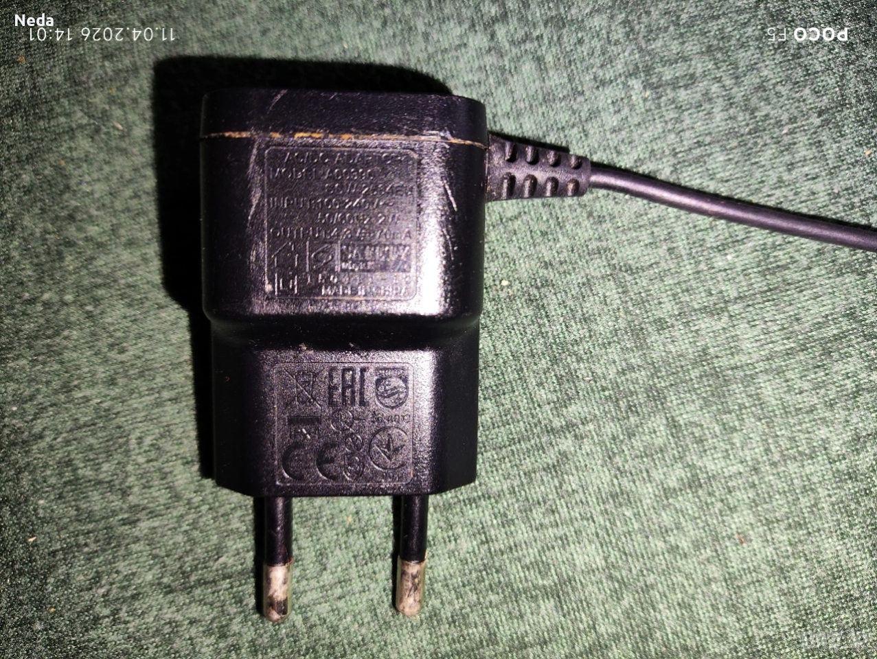Проявено работещо зарядно за тример или самобръсначка Philips. Неизползвано. Модел А00390, SSW-2564EU, изход 4,3V, 70mA.