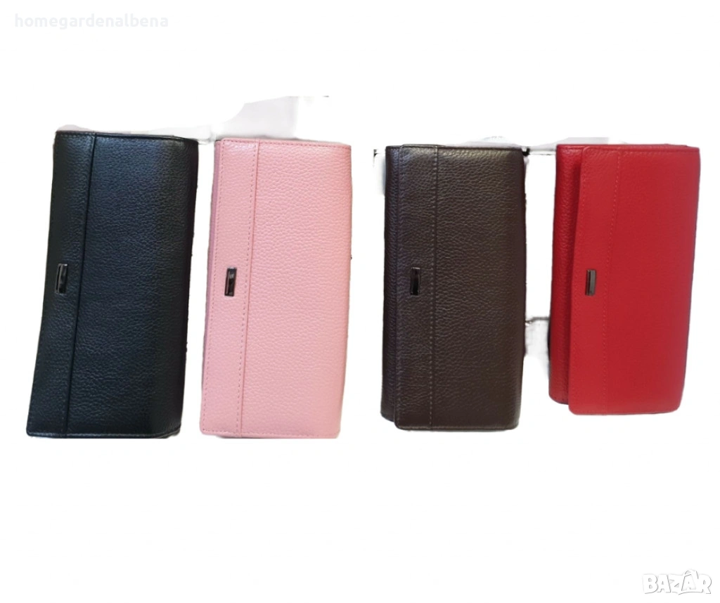 Класическо дамско портмоне естествена кожа — розово, червено, черно, кафяво