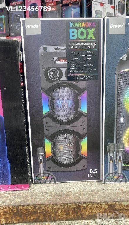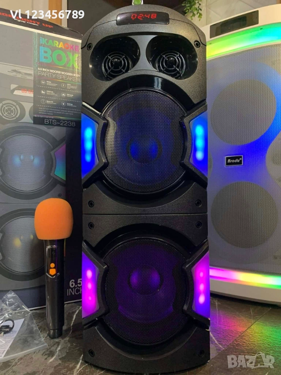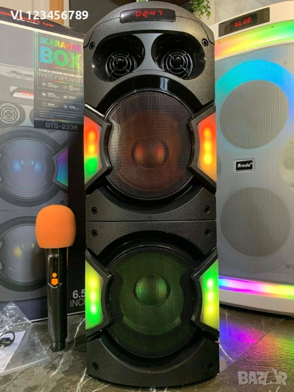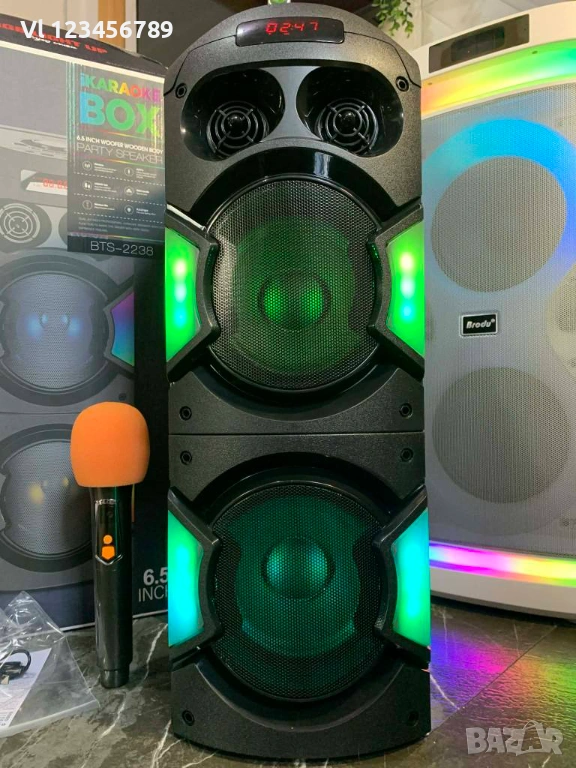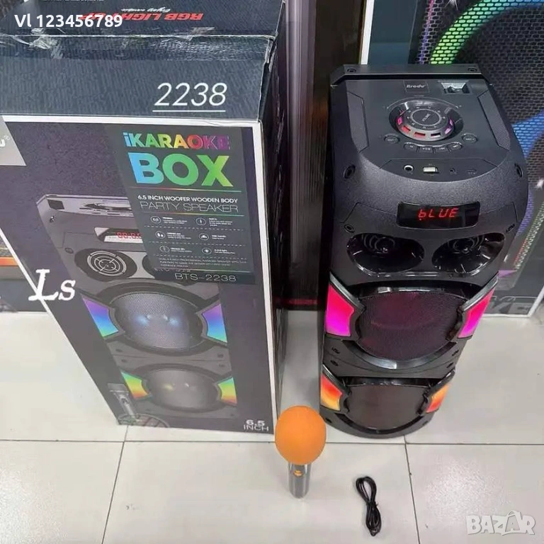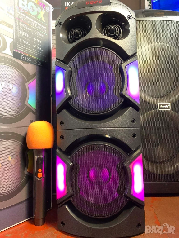 Двойна караоке колона BTS 2238 с Bluetooth 2х6.5“ микрофон и светлини