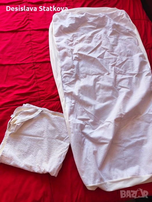 Продавам детски комплекти чаршафи за бебешка кошара. Долни чаршафи с ластик,плик и калъфка за възглавничка. Само розовият е долен. Синият комплект е с олекотена завивка. Размери на долното чаршафче 130см дължина и 60см ширина. Плик 120см на 90см. 2 бр протектори единият. Извинявам се, че са измачкани на снимките. Запазени нямат захабено или скъсано. Цена по договаряне.