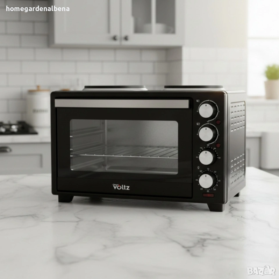Готварска печка Voltz с фурна и 2 котлона 3200W компактна електрическа 40/48 литра