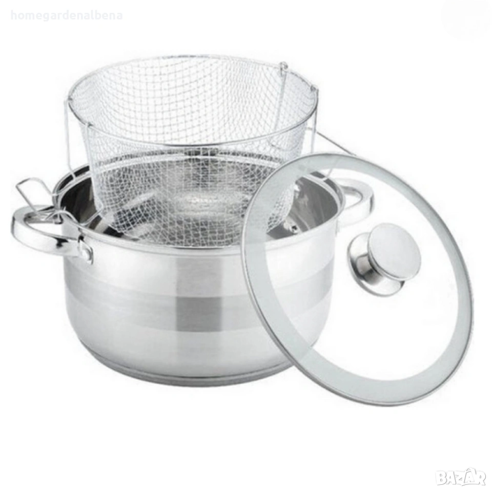 Тенджера с кошница за пържене и стъклен капак Cheffinger Ø24 см инокс 6.5 л индукция