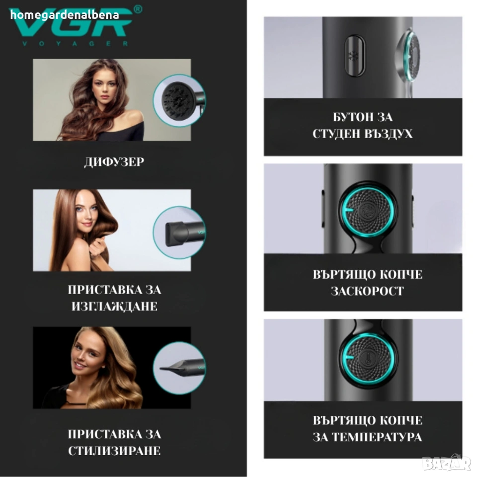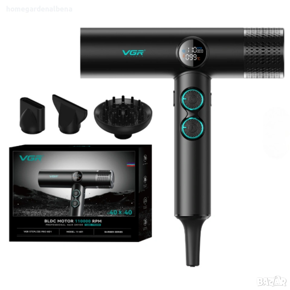 Ключови думи: професионален сешоар, VGR сешоар, BLDC мотор сешоар, йонен сешоар, сешоар 1500W, сешоар дифузер, сешоар 110000 RPM, антистатичен сешоар,