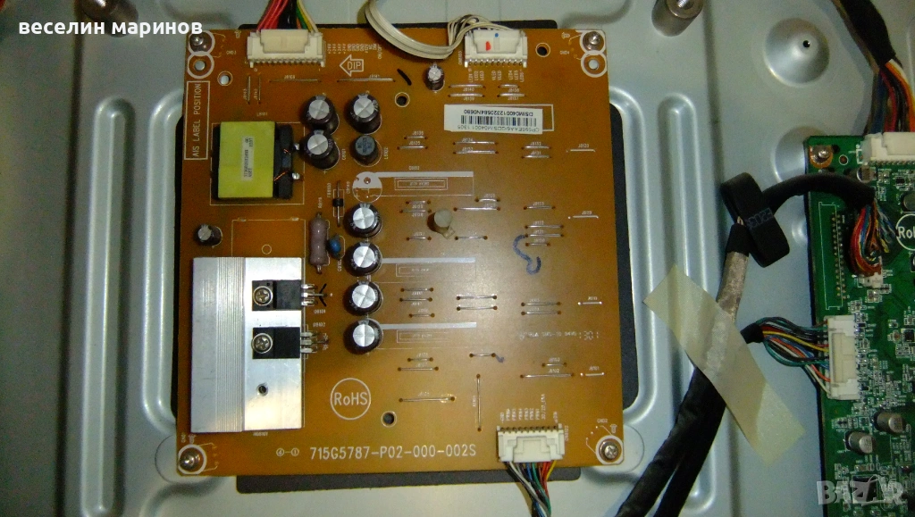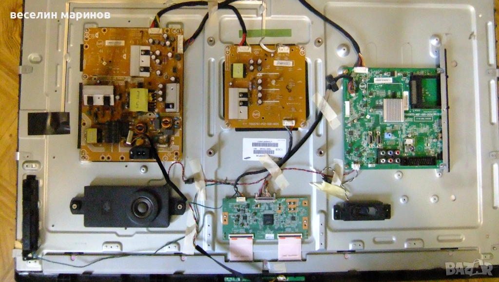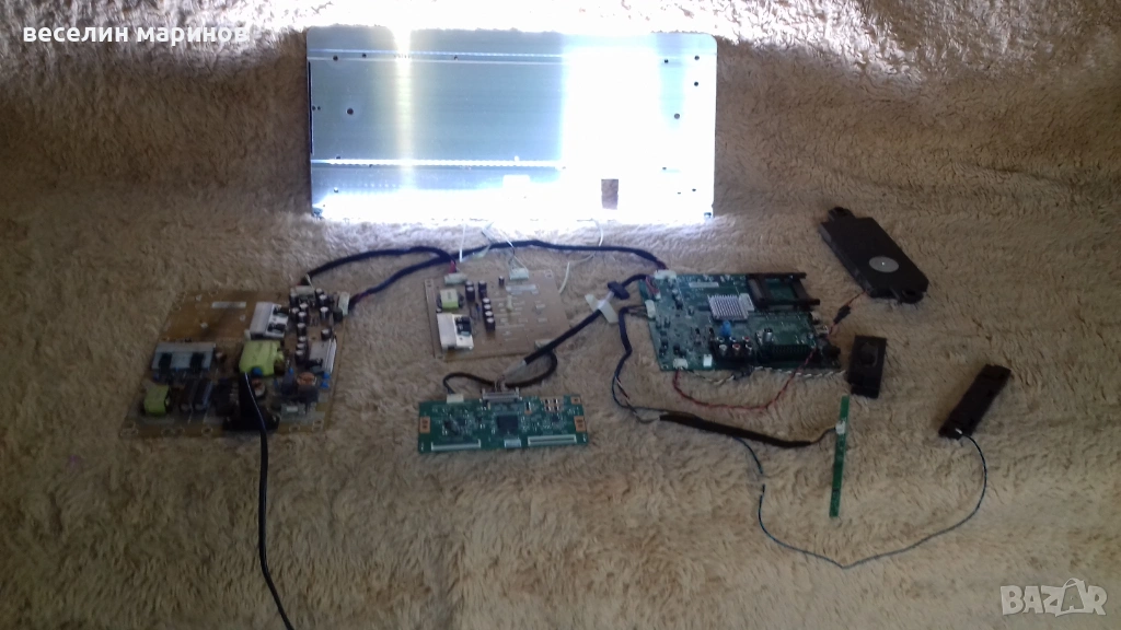 Захранване 20 евро , мейн борд 35 евро , тикон 15 евро. платка захр. подсветка с подсветката 20 евро. Говорителите по 5 евро. Ако се вземат всичките за 70 евро. Платките работят, пуснал съм снимка с работеща подсветка. Телевизорът е със пукнат панел.