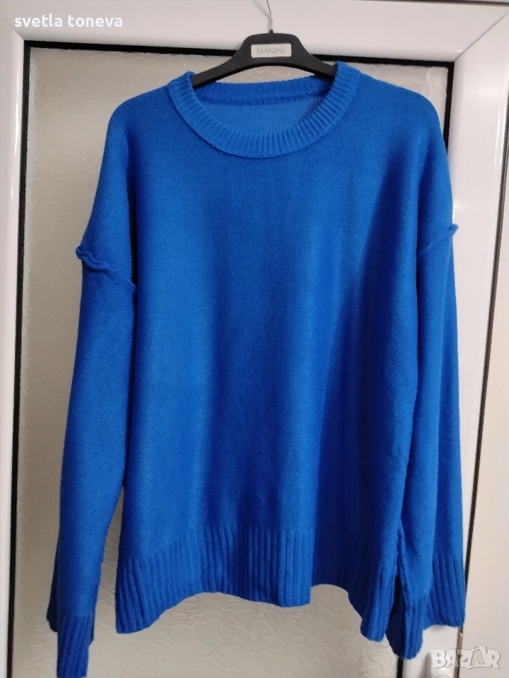 Cm. Практичен пуловер. Здрава материя, съмнение бързо, не се напада от молци, устойчив на намачкване. Размери:гр.обиколка-136;дължина-64см;обширен ръкав-34см обиколка