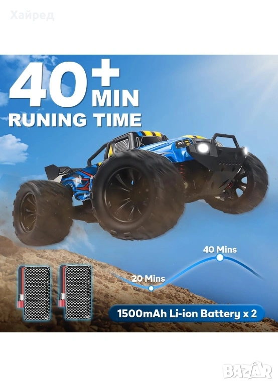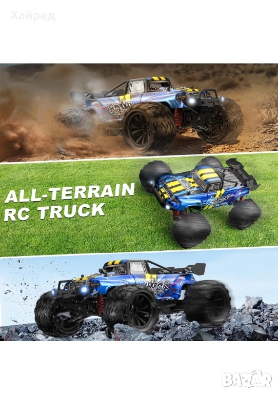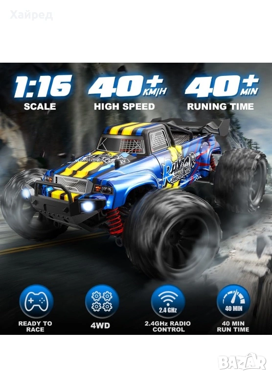 【Изживейте вълната от скорост с 1:16 RC колички】: Проектирана както за възрастни, така и за млади състезатели на възраст 8+, тази бърза RC количка предлага вълнуващо возене със скорости, достигащи до 40 км/ч. 4x4 RC камионът за всякакъв терен е оборудван с два мощни двигателя 280, осигуряващи стабилна производителност, обещаваща несравнимо състезателно изживяване. 【Прецизност и контрол със синхронно дистанционно управление 2.4GHz】: Нашата система за дистанционно управление от хоби клас 2.4GHz предлага безпроблемно и бързо реагиране, с обхват до 164 фута (50 метра). Този широк обхват гарантира, че вие и вашите деца можете да се насладите на часове високоскоростни преследвания и вълнуващи състезания. RC количката разполага и с пропорционален контрол на дросела и ъгъла на предното колело, което е подходящо както за начинаещи с лекота на използване, така и за напреднали потребители с персонализируеми настройки. 【Безкрайно забавление с над 40 минути време за игра】: Всяка RC количка за възрастни се предлага с 2 литиево-йонни 7.4V 1500mAh акумулаторни батерии (1 от които е вградена в количката), осигуряващи непрекъснато време за игра от над 40 минути на зареждане (приблизително 20 минути на батерия). Включен е 7.4V-USB кабел за балансирано зареждане за удобно и ефективно поддържане на батерията. С този мощен живот на батерията можете да се справяте със стръмни наклони и неравен терен, без страх от загуба на производителност. 【Покорете терена с RC колички за всякакви терени】: Тези RC колички са оборудвани с гъвкави гумени гуми за офроуд, които се отличават с подобрено сцепление и противоплъзгащи свойства, което ги прави умели в преминаването през трева, чакъл, кал, камъни и пясък. Предната част на превозното средство е украсена с два LED фара, осигуряващи видимост и забавление по време на нощни приключения. 【4WD състезателен камион за максимална стабилност】: С гъвкаво найлоново шаси и независима система за окачване на четирите колела, този RC автомобил е създаден за стабилност при висока скорост. С професионално серво с въртящ момент 2 кг и двойни диференциали, той предлага превъзходна управляемост, което го прави подходящ както за употреба на закрито, така и на открито. Това го прави идеален подарък за ентусиасти на състезанията, преодолявайки разликата между деца и възрастни в света на вълнението от RC коли.