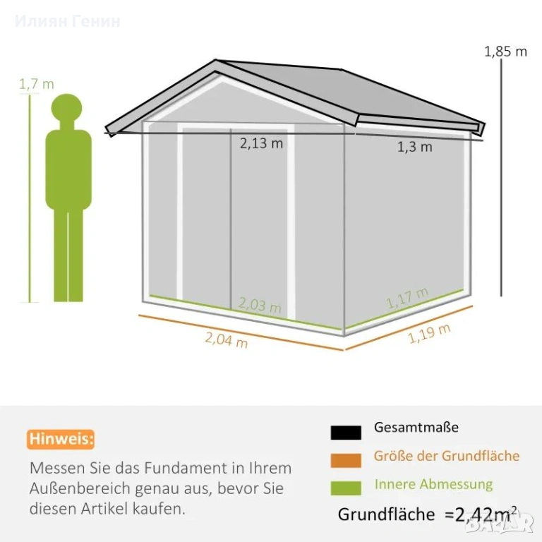 ✔ Здрава метална конструкция - изключително здрава, устойчива на атмосферни влияния и водоустойчива