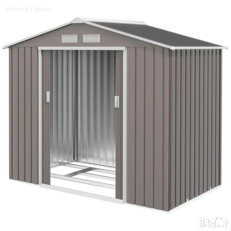 Градинска барака Outsunny с плъзгащи се врати 2.13 x 1.30 x 1.85 см, метален, сив - 200.00 €.