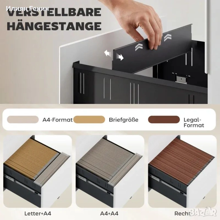 ✔ Голямо чекмедже за окачване на документи (формат A4, A5)