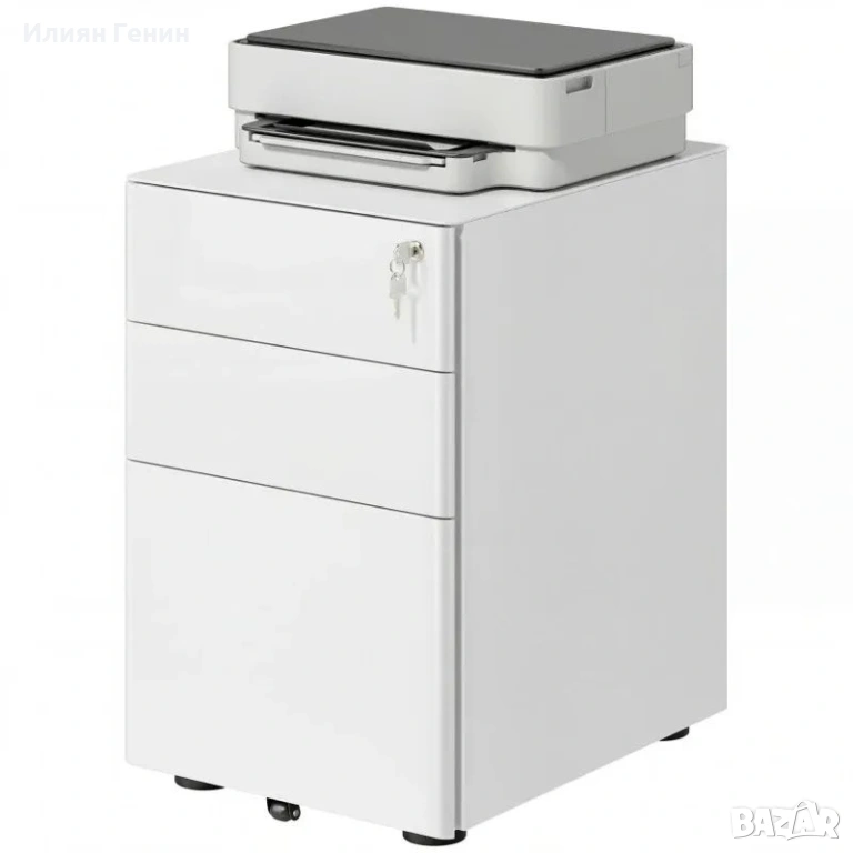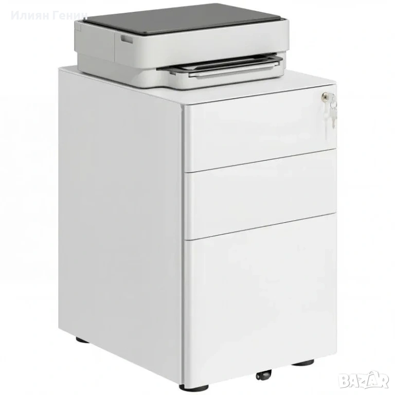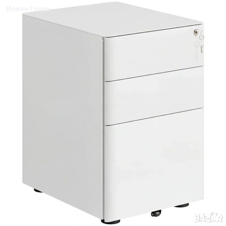 Сигурно съхранение: Горното чекмедже на подвижния контейнер е снабдено с ключалка, която заключва и трите отделения едновременно. Включени са два ключа, така че винаги да имате един под ръка.