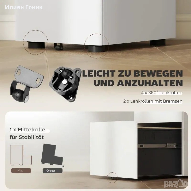✔ 4 въртящи се колелца на шкафа за документи за лесно движение