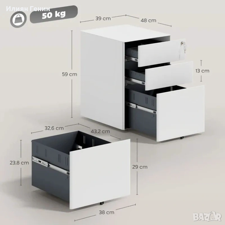 ✔ Товароносимост: 15 кг (на чекмедже), 50 кг (общо)