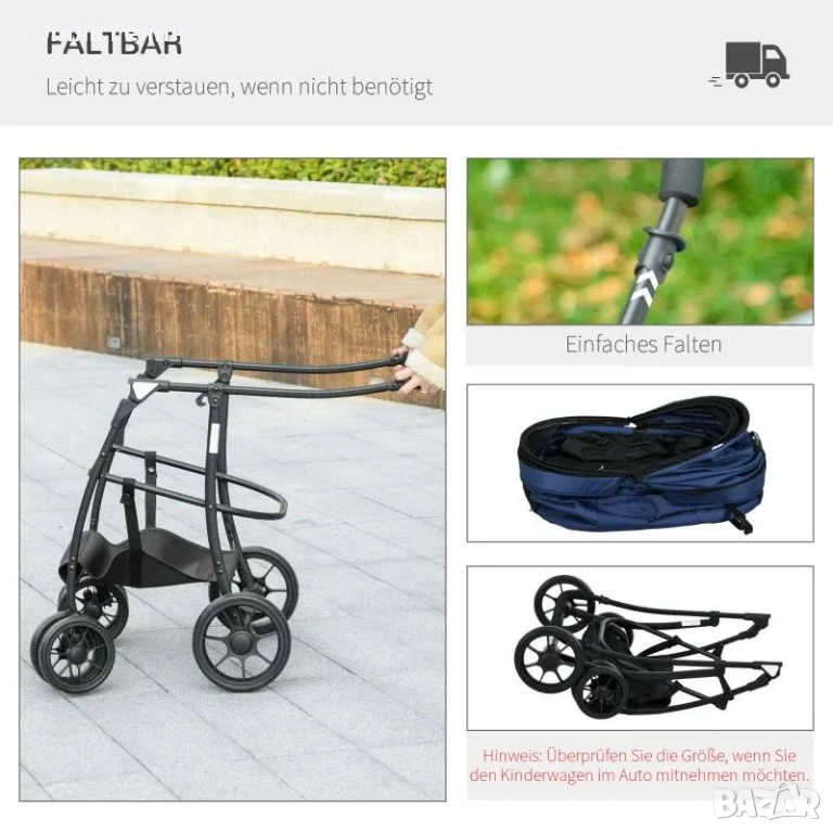 PawHut Кучешка количка/бъги, сгъваема, до 10 кг, с дъждобран и 2 предпазни каишки, 81 x 68 x 98,5 см, тъмносиня - 70.00 €.