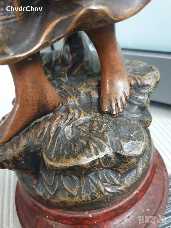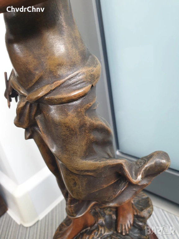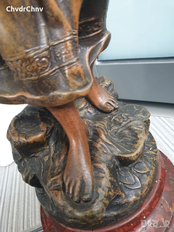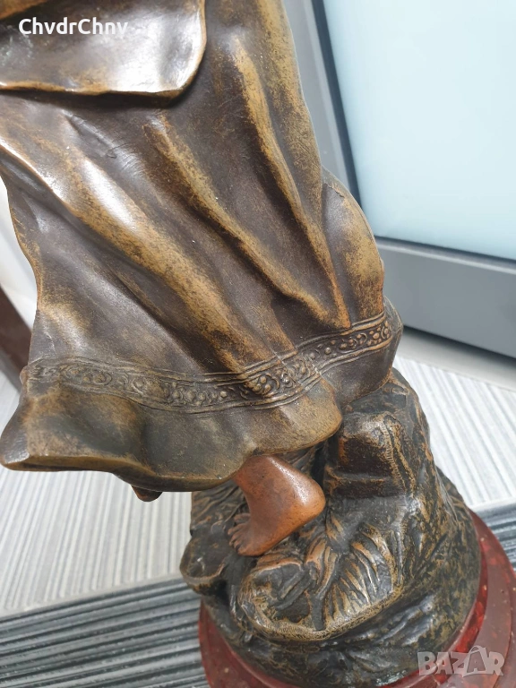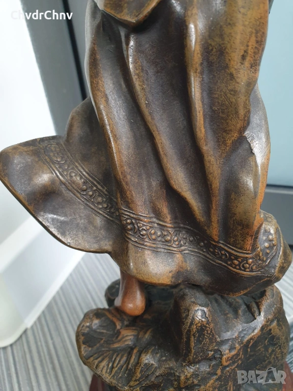 Статуята е от стар ЦАМ (сплав цинк-алуминий-мед) позволяващ по-добра детайлност от бронза, монтаж с болтове и стари квадратни гайки, в оригиналното си състояние/без ремонти.