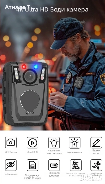 body camera, камера за тяло, 4K камера, 4K body camera, камера за охрана, охранителна камера, камера с нощно виждане, професионална камера, камера за запис, камера със запис звук, камера с дисплей, мини камера, компактна камера, камера за сигурност, камера за шофьори, камера за работа на терен, камера за полиция, камера за охрана персонал, камера с карта памет, body cam 4K, ultra HD камера, камера високо качество запис, камера за доказателства, wearable камера, камера за униформа, камера за ежедневна употреба, камера здрава конструкция, професионална body cam