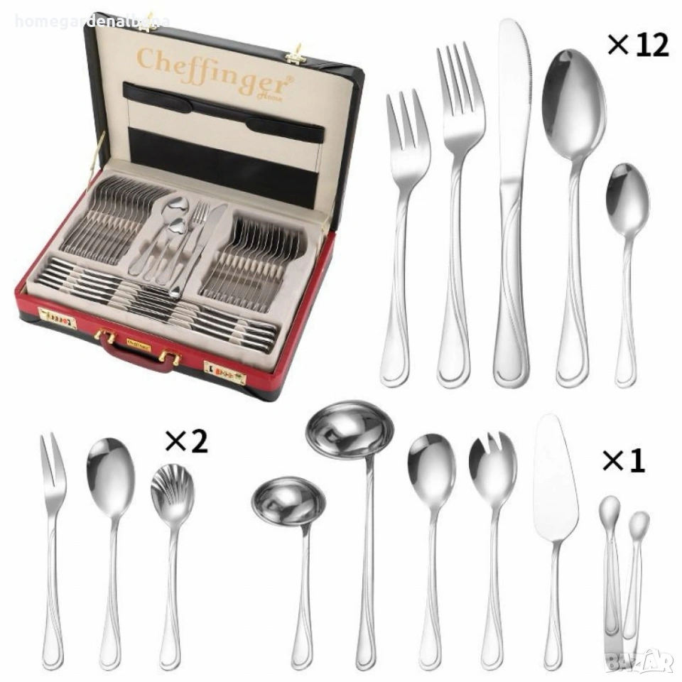 Представяме ви елегантен комплект прибори Cheffinger от 72 части – перфектен избор както за ежедневна употреба, така и за специални поводи.