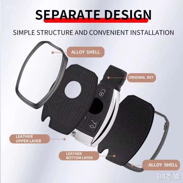 калъф за ключ на Mercedes, който предпазва ключа от надраскване, удари и износване. Освен защита, той придава и по-елегантен вид на ключа благодарение на модерния си дизайн.