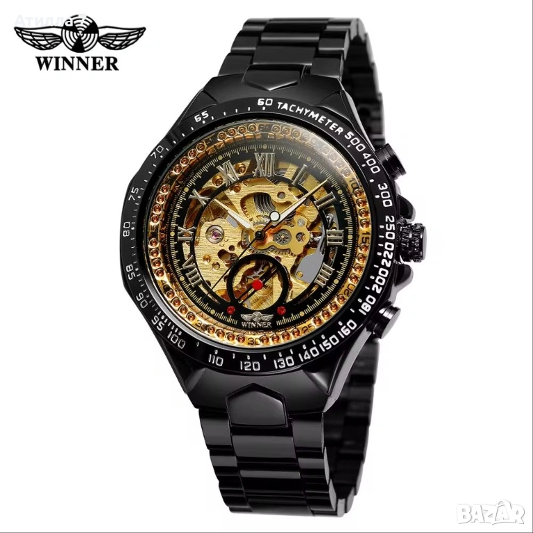 мъжки часовник, Winner Automatic, автоматичен часовник, скелетон дизайн, спортно-елегантен часовник, метална верижка, механичен часовник, стилен мъжки аксесоар, ежедневен часовник, подарък за мъж, луксозен часовник, аксесоар за победители, подаръчна кутия