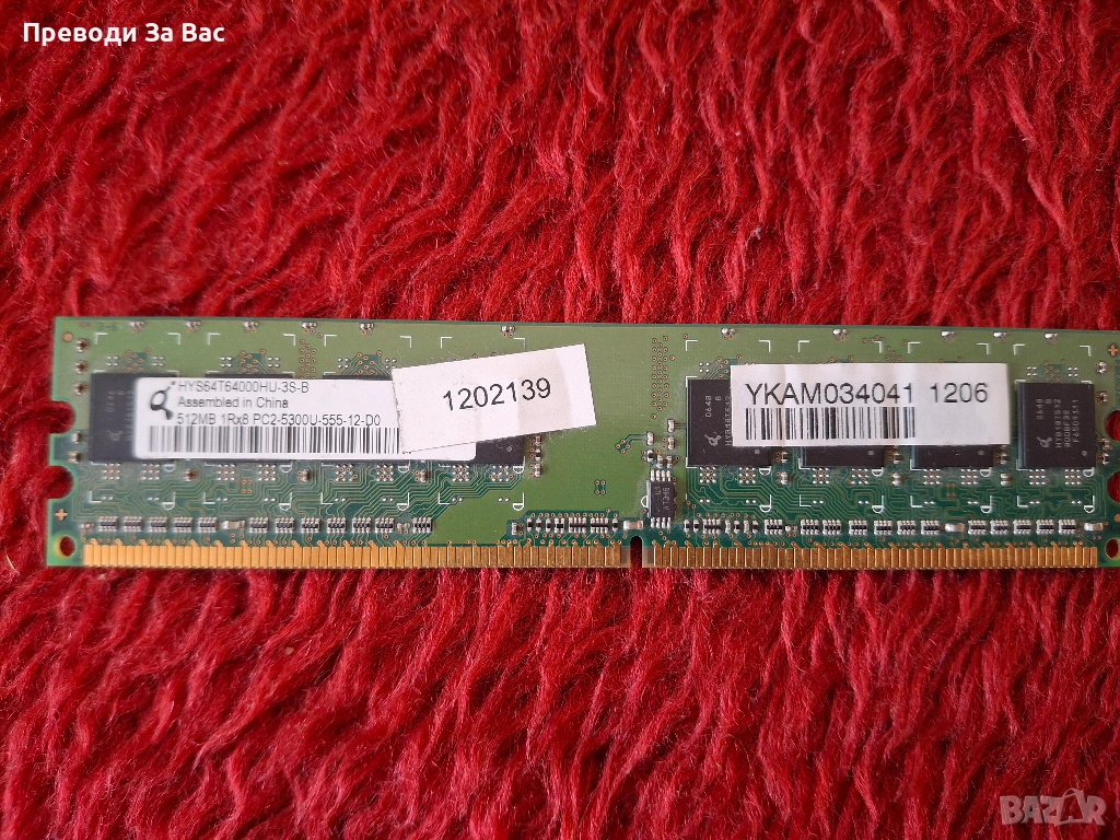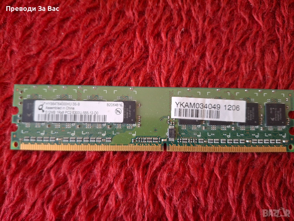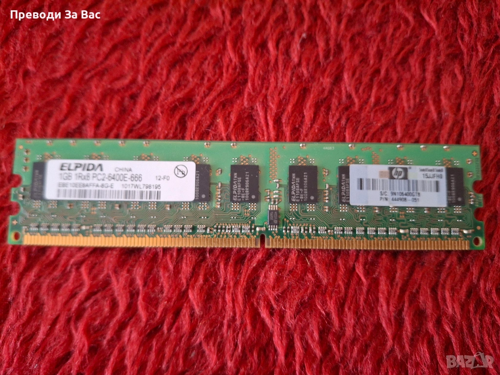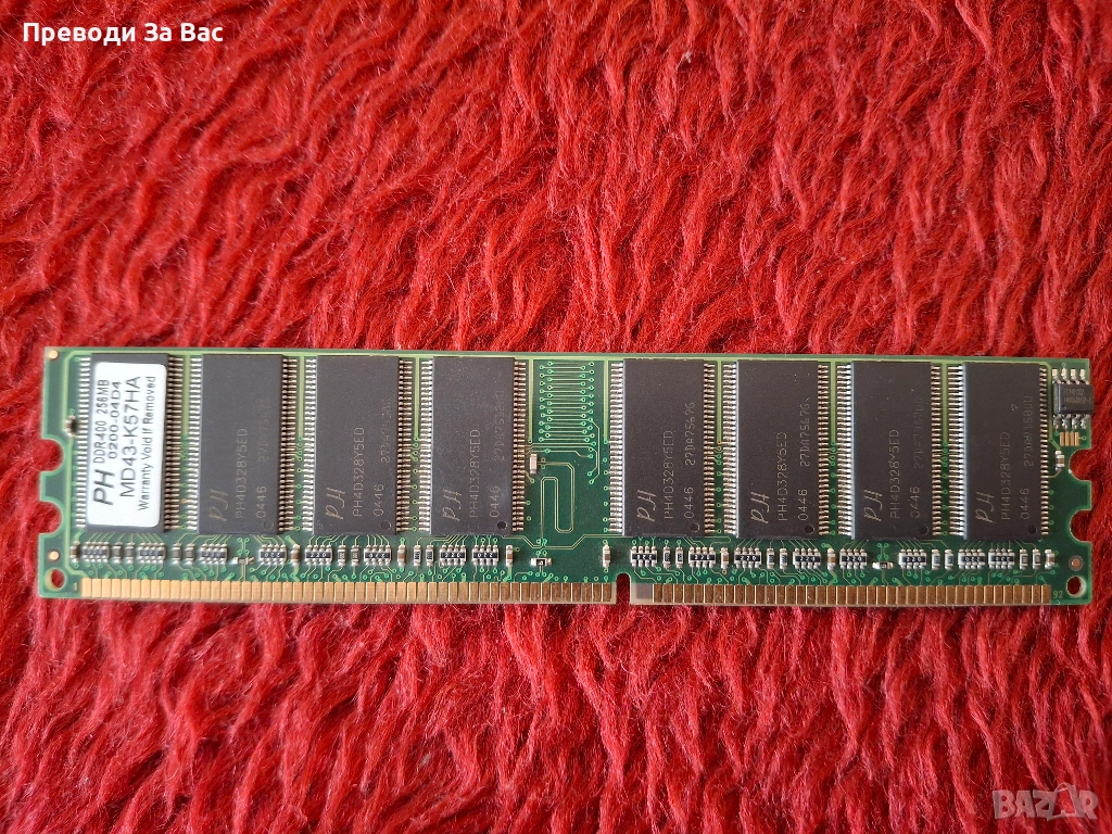 Продавам различни RAM памети: DDR400, DDR2, DDR3, сървърна памет, SODIMM. Цената е 5 EUR / 1 GB. Намират се в Пловдив, квартал Кючук Париж, в работно време. Предпочитам лично предаване или плащане по Revolut.