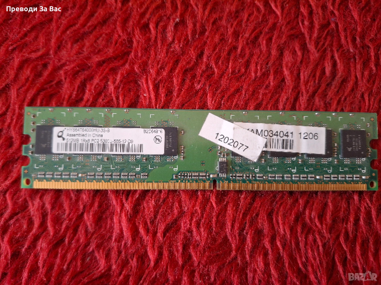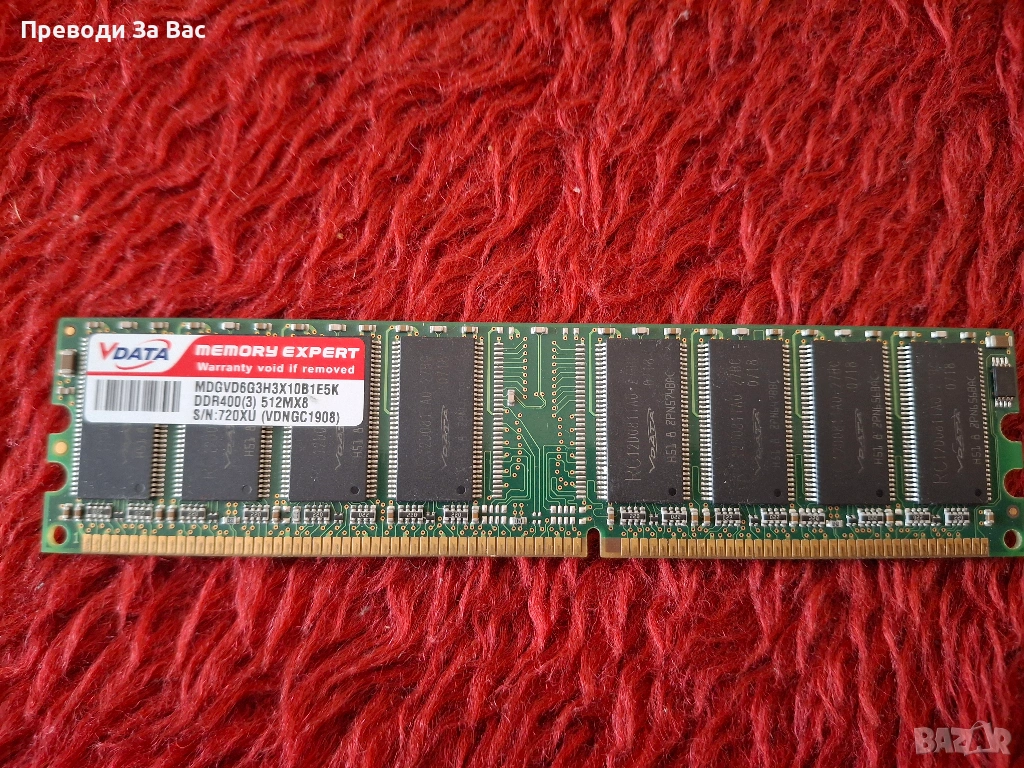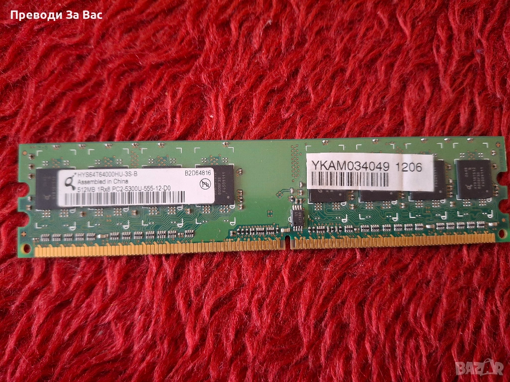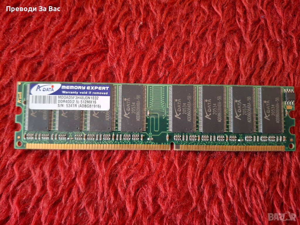 Продавам различни RAM памети: DDR400, DDR2, DDR3, сървърна памет, SODIMM. Цената е 5 EUR / 1 GB. Намират се в Пловдив, квартал Кючук Париж, в работно време. Предпочитам лично предаване или плащане по Revolut.