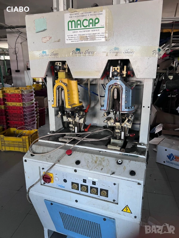 Продавам машина за оформяне на на задната част на обувките (контрафорти) на обувки, подходяща за обувна индустрия.