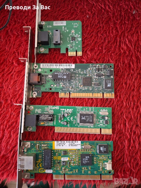 Продавам различни мрежови LAN карти. Намират се в Пловдив, квартал Кючук Париж, в работно време. Предпочитам лично предаване или плащане по Revolut.