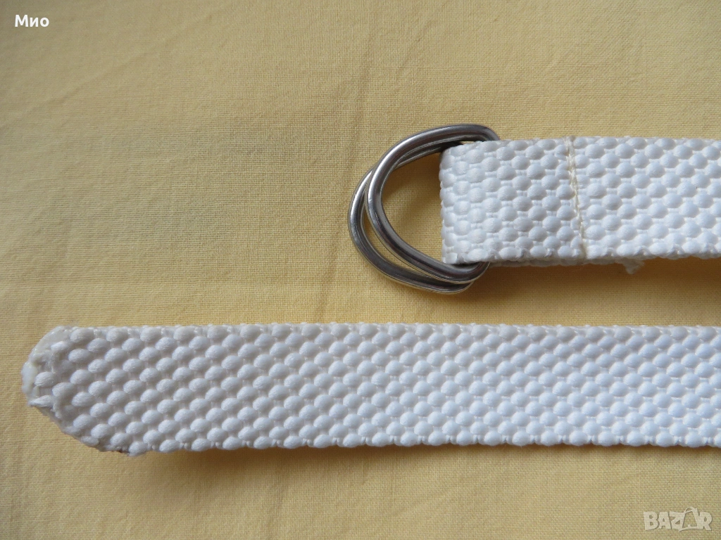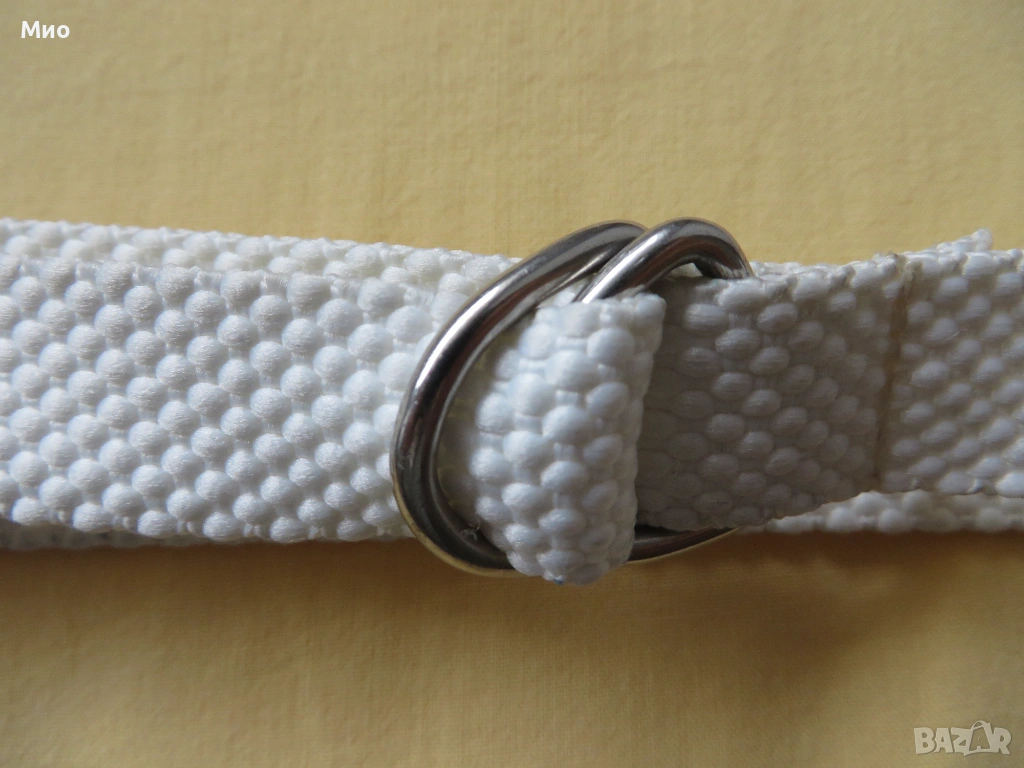 Нов бял текстилен колан с дължина 85 см и ширина 2 см.