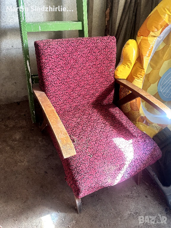 Ретро фотьойл с дървени подлакътници – винтидж стил → Обява 54166889
