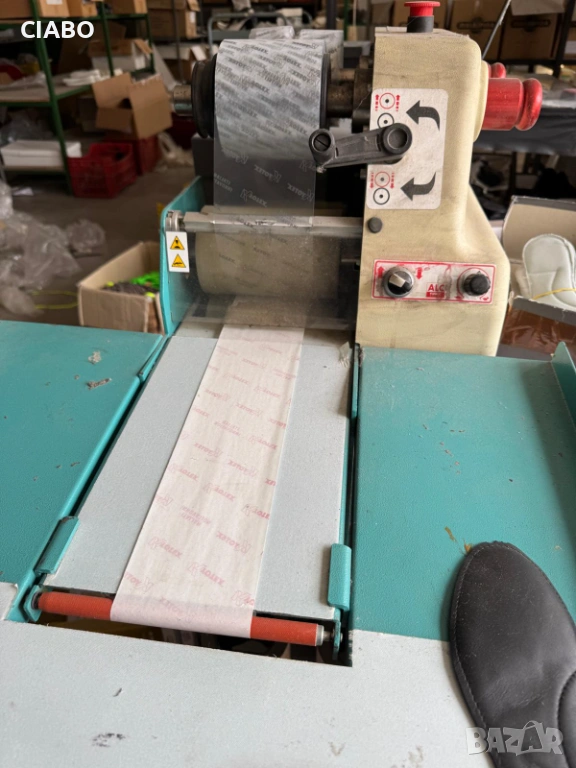 Продавам машина за лепене на стелки, подходяща за обувна индустрия.